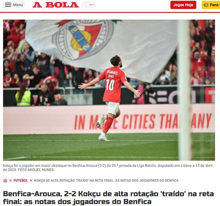 Beraberliğe karşın Orkun gösterdiği performans Portekiz basınında övgü aldı. İşte ülke manşetlerinde Orkun Kökçü;