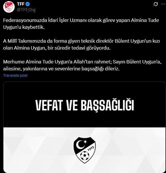 Federasyonumuzda İdari İşler Uzmanı olarak vazife yapan Almina Tude Uygun’u kaybettik.