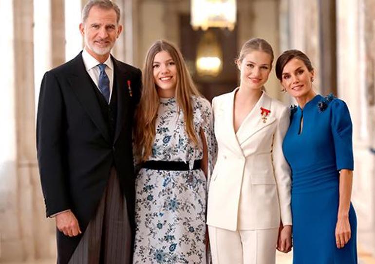 Felipe ile Letizia, iki kızları Leonor ve Sofia ile memnun aile tablosu sergiliyor. Babası Juan Carlos, Felipe’nin evliliğinin 10’uncu yıl dönümünde, 19 Haziran 2014’te tahtı bıraktı. O tarihten bu yana da Felipe kral, Letizia kraliçe unvanını taşıyor.