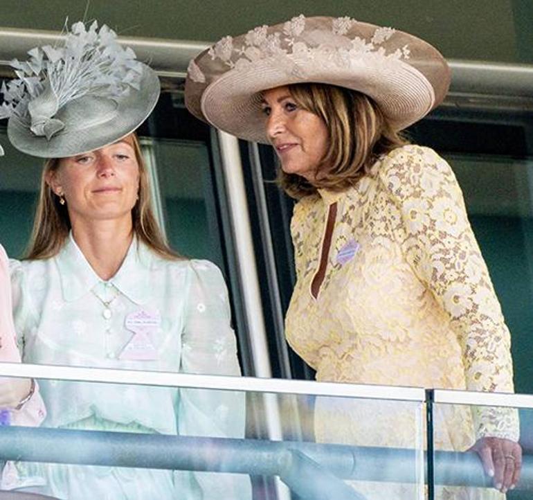 Carole Middleton’ın gelini oğlu James ile evlenirken 41 yıl evvel kendi düğününde giydiği gelinliği giymişti. Ascot’ta da gelinine torunu Louis’nin vaftiz merasiminde kullandığı şapkayı ödünç verdi.