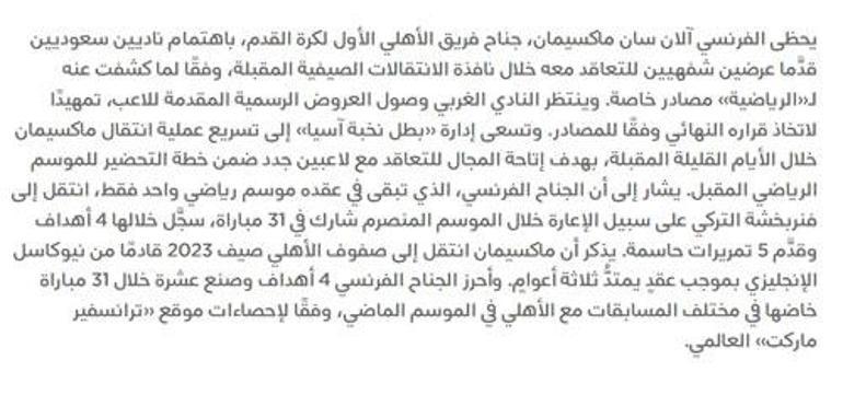 İsmi açıklanmayan bu iki kulübün Maximin ile kelamlı bağlantıya geçtiği, Al Ahli’nin resmi teklifi beklediği söz edildi.