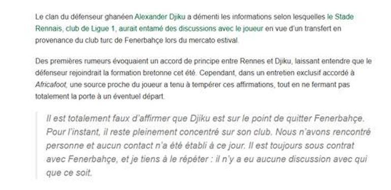 Fenerbahçeli Djiku için Rennes transferi açıklaması!