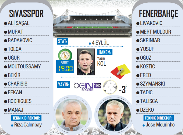 F.Bahçe’nin Sivas deplasmanındaki en büyük çekincelerinen biri hava ve saha koşulları… Gerçekten Mereroloji Genel Müdürlüğü’nün varsayımlarına nazaran, bugün maçın oynanacağı saatlerde kar yağışı bekleniyor. Müsabaka sırasında sıcaklığın -5 dereceye kadar düşme ihtimali de bulunuyor. Sivas’ta evvelki gün kar yağışı tesirli olurken – 14’e düşen soğuk havanın da tesiriyle 4 Eylül Stadı’nın yerinin bir kısmı karla kaplandı.
