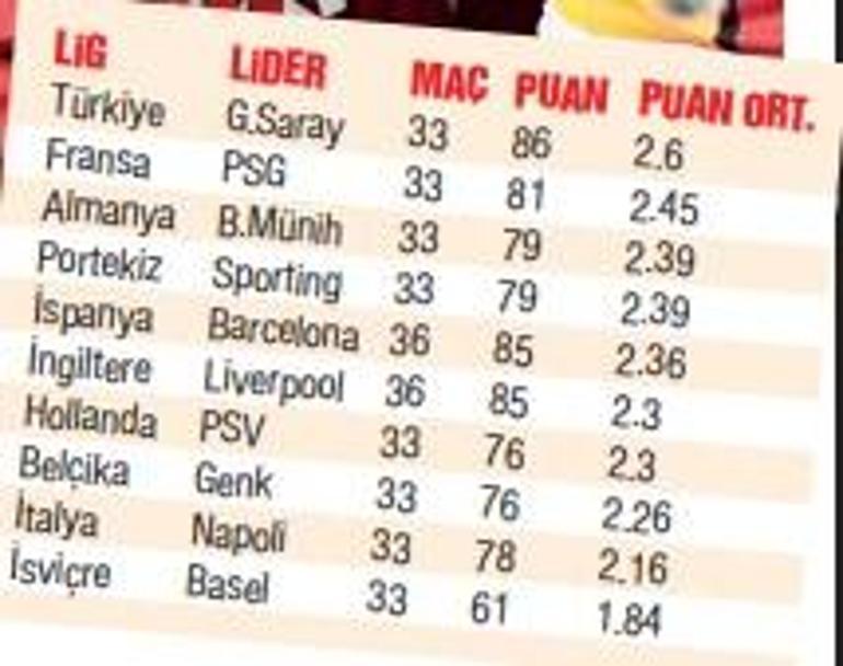 Süper Lig’de oynadığı 33 müsabakada 86 puan toplayan sarı kırmızılı ekip maç başına 2.6 puan ortalamasıyla Avrupa’nın dev kulüplerini geride bırakmayı başardı.