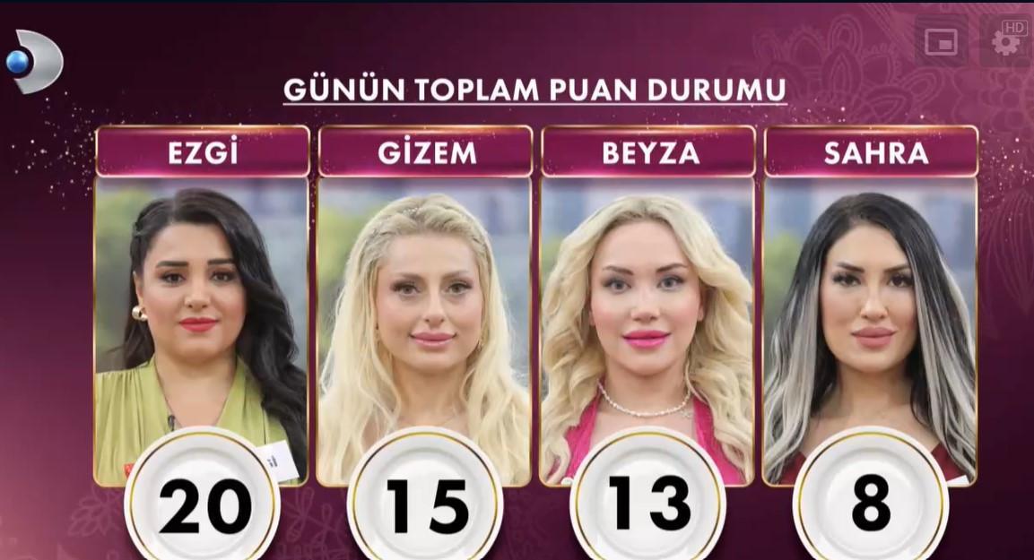 Haftanın ikinci gününde çeyreği alan gelin Ezgi oldu. Sahra ise ne yazık ki kadayıfları yaktığı için eksi 2 ceza puanı aldı.