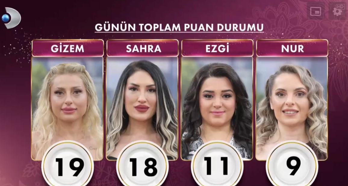 Haftanın birinci gününde en yüksek puanı toplayarak çeyrek altının sahibi gelin Ezgi oldu.