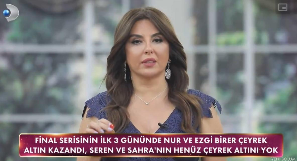 Final serisinin üçüncü gününde Gelinim Mutfakta günün birincisi ve çeyrek altının sahibi Sahra oldu. Sahra ve Ezgi bugün eksi 2 ceza puanı da almıştı.