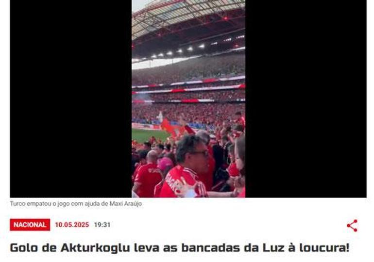 Portekiz’in yüksek tirajlı gazetesi A Bola, Kerem Aktürkoğlu’nun golünün akabinde, “Kerem Aktürkoğlu’nun golü Luz tribünlerini çıldırttı!” başlığını attı. Ayrıyeten, “Aktürkoğlu, Benfica’nın Sporting Lizbon derbisinde beraberlik golünü attı, taraftarlar tribünde çılgınca sevindi.” yorumu da yapıldı.