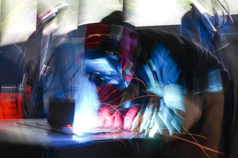 En düzgün ve hakikat kaynağı yapmak için makina başına geçen öğrenciler, derece elde etmek için tezgahta 30 dakika ter döktü.