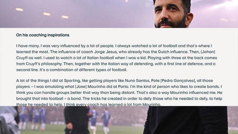 “Birçok beşerden etkilendim ancak tıpkı vakitte çok fazla futbol maçı izledim ve bu halde öğrendim. Jorge Jesus’tan çok etkilenmiştim, o da Hollanda ekolünden ilham alıyordu. Çocukluğumda İtalya Serie A maçlarını yakından takip ediyordum. Üçlü stoper ideolojisini Cruyff’un sisteminden öğrendim ve bunu İtalyan savunması ile birleştirdim. Birkaç ideolojinin karışımı oldu.