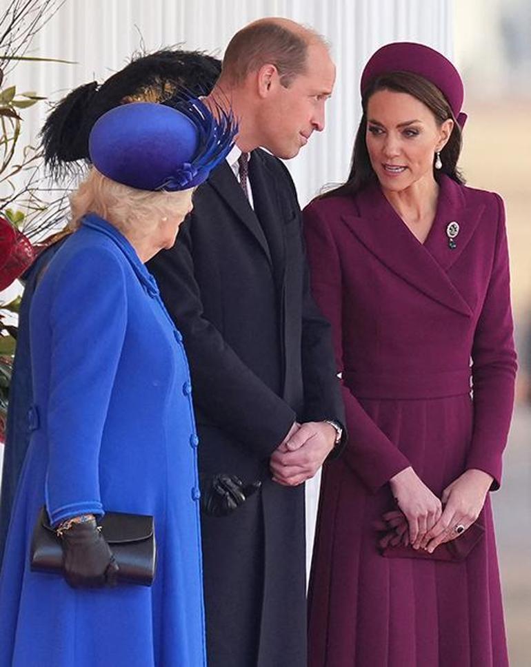 Galler Prensesi Kate Middleton, birebir kıyafeti 2022 yılında Güney Afrika Devlet Başkanı Cyril Ramaphosa için düzenlenen resmi karşılama merasiminde de giymişti. Saç modeli ve şapkası bile birebirdi. Ancak o gün yakasında farklı bir broş vardı.