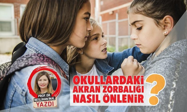 Yapılan araştırmalar ise okul yıllarında zorbalığa uğrama yaygınlığının nerdeyse yüzde 50 oranında olduğunu ve çocukların en az yüzde 10’unun sistemli olarak zorbalığa maruz kaldığını gösteriyor. Türkiye Çocuk ve Genç Psikiyatrisi Derneği Lideri Prof. Dr. Neslihan İnal, zorbalıkların birçoklarının okullardaki oyun alanlarında, yemekhanelerde, tuvaletlerde, servis araçlarında yahut sanal oyun ve sohbet salonlarında meydana geldiğini lisana getiriyor. Prof. Dr. İnal, hürriyet/eğitim sayfasında kaleme aldığı yazısında akran zorbalığının önüne geçmek için hem eğitimcilerin hem de ebeveynlerin neler yapabileceğini anlatıyor.