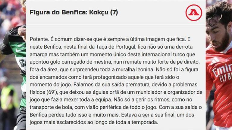 Mücadele sonrasında Portekiz gazetesi A Bola, Orkun Kökçü ve Kerem Aktürkoğlu’nun performansını kıymetlendirdi.