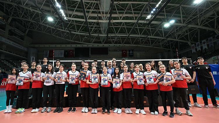 Burada TVF Spor Lisesi ve Fabrika Voleybol sporcularıyla bir ortaya gelen Şahin, genç sporcuların 23 Nisan Ulusal Egemenlik ve Çocuk Bayramı’nı kutladı.