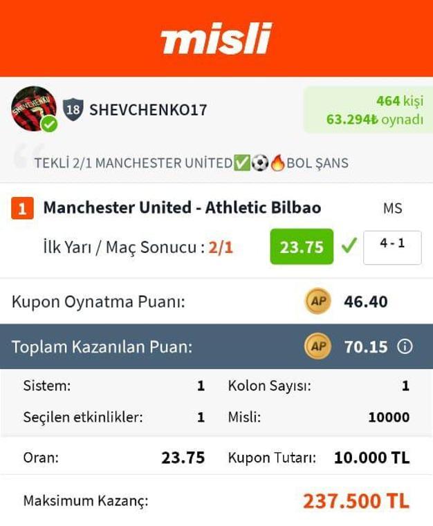 İşte Shevchenko17’nin Misli Arena’da hem kazandığı hem de kazandırdığı o kupon…