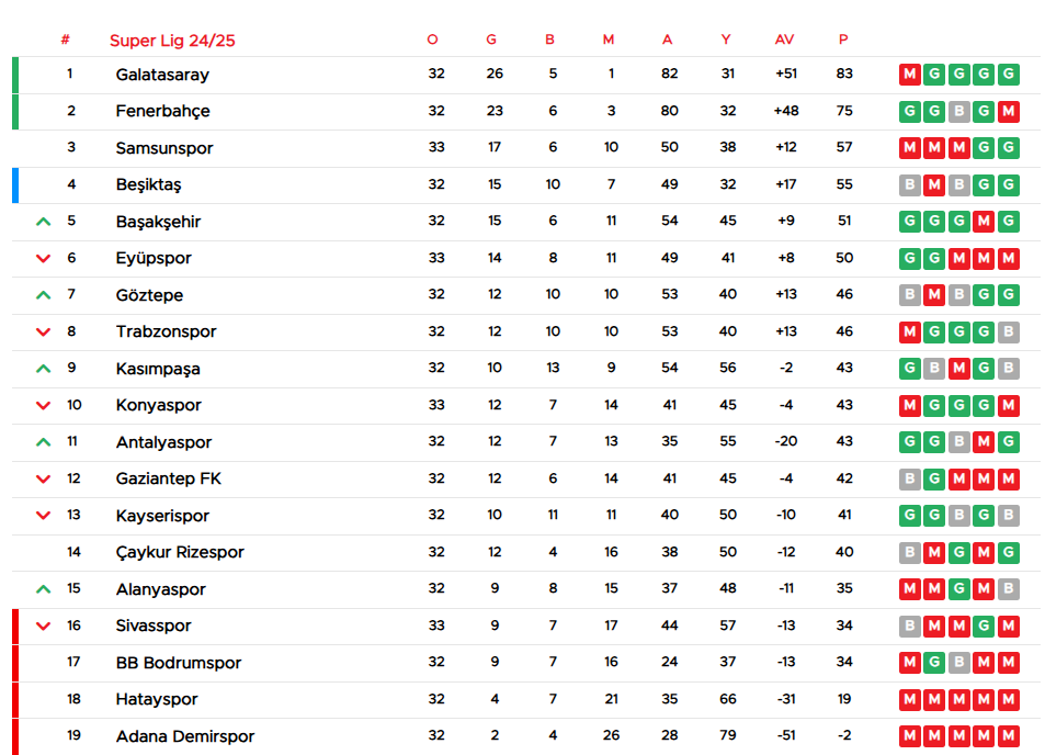 SÜPER LİG BİTİŞ TARİHİ 2025: Süper Lig ne vakit bitiyor, kaç hafta kaldı? Galatasaray ve Fenerbahçe’nin kalan maçları hangileri? İşte Süper Lig 34. hafta puan durumu tablosu ve maç sonuçları