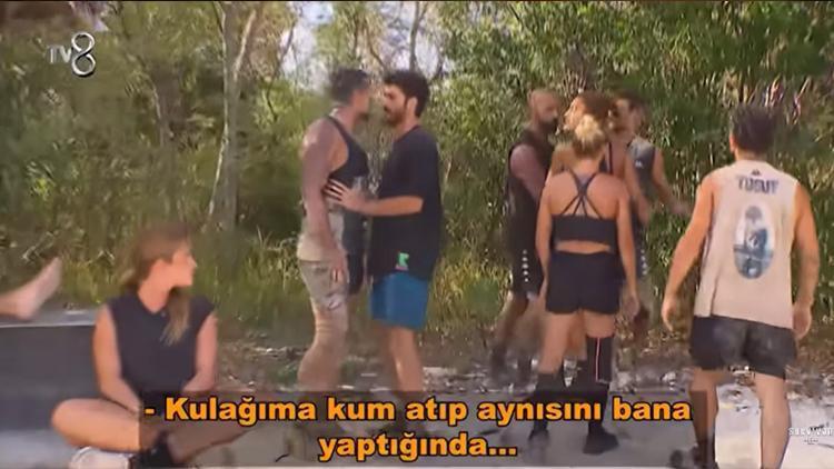 Batuhan, “Kulağıma kum atıp birebirini bana yaptığında” cümlesini kurarken bir anda yerden kum alım Hikmet’e fırlatıyor. Hikmet sonla Batuhan’ın üstüne saldırırken Volkan’ın dirseği denk geliyor.
