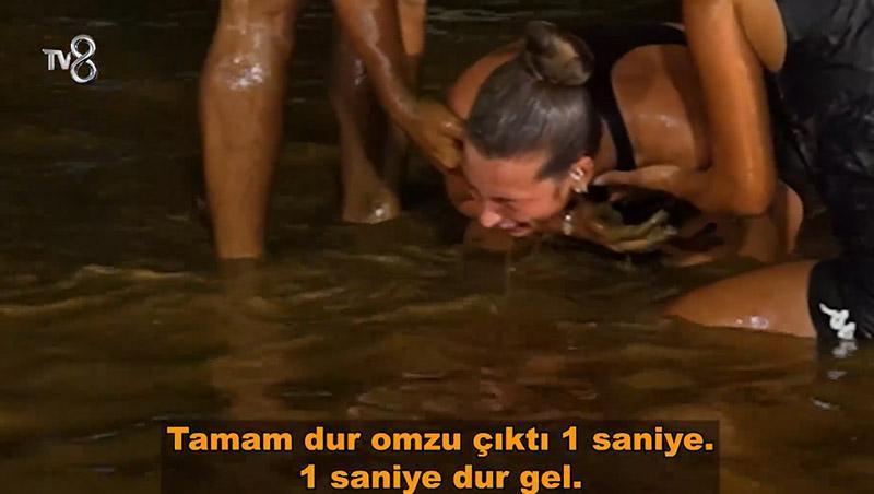 Öte yandan parkurda rakibi Sevgi ile gayret eden Yağmur parkura çarptı. Acılar içinde bağırmaya başlayan Yağmur omzunu ve dirseğini vurduğunu söyledi. Sıhhat takımlarının müdahalesi sonrası yarışmacı, ambulansla hastaneye kaldırıldı.