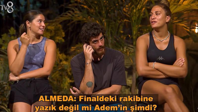 Taner Kılıçcı’ya ilişkin olduğu öne sürülen ses kayıtlarını dinleyen Almeda, “Finaldeki rakibine yazık değil mi Adem’in artık?” diyerek reaksiyon gösterdi.