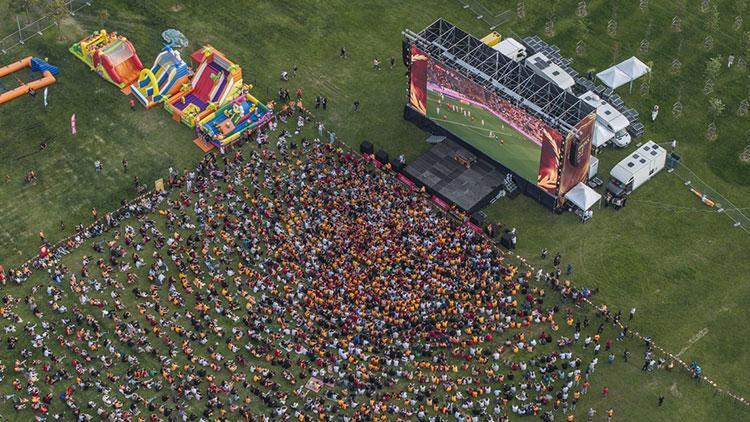 Galatasaray’da 25. şampiyonluk kutlamaları dün Yenikapı Miting Alanı’nda başladı. GS Plus uygulamasını indiren taraftarların fiyatsız katıldığı kutlamalar saat 12.00’de DJ performansları ile start aldı. Akabinde, gruplarının Göztepe ile oynadığı maçı dev ekrandan izleyen taraftarlar, saat 22.00’ye kadar tezahüratlar, marşlar söyleyerek büyük coşku yaşadı. Bugün tıpkı yerde yapılacak asıl büyük kutlamalar ise saat 16.00’da başlayacak.