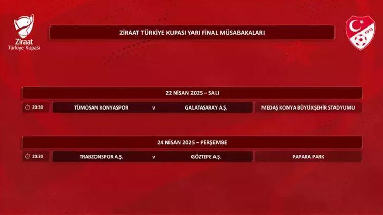 Yarı finalin birinci maçında TÜMOSAN Konyaspor, Galatasaray’ı konuk edecek. Başka gayrette ise Trabzonspor, alanında Göztepe’yle karşılaşacak.
